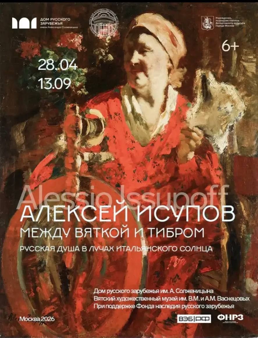 С 28 апреля по 13 сентября 2026 года приглашаем на выставку «Алексей Исупов: Между Вяткой и Тибром. Русская душа в лучах итальянского солнца», представляющую живопись и графику художника из собрания Вятского художественного музея им. В.М. и А.М.Васнецовых и Дома русского зарубежья им. А.Солженицына. Выставка проводится при поддержке Фонда наследия русского зарубежья. Алексей Владимирович Исупов (1889, Российская империя, Вятка — 1957, Италия, Рим) — это пример художника, чья жизнь и творчество были разделены между Россией и Италией, а эмиграция стала ключевым, хотя и сложным, этапом его биографии. Дом русского зарубежья